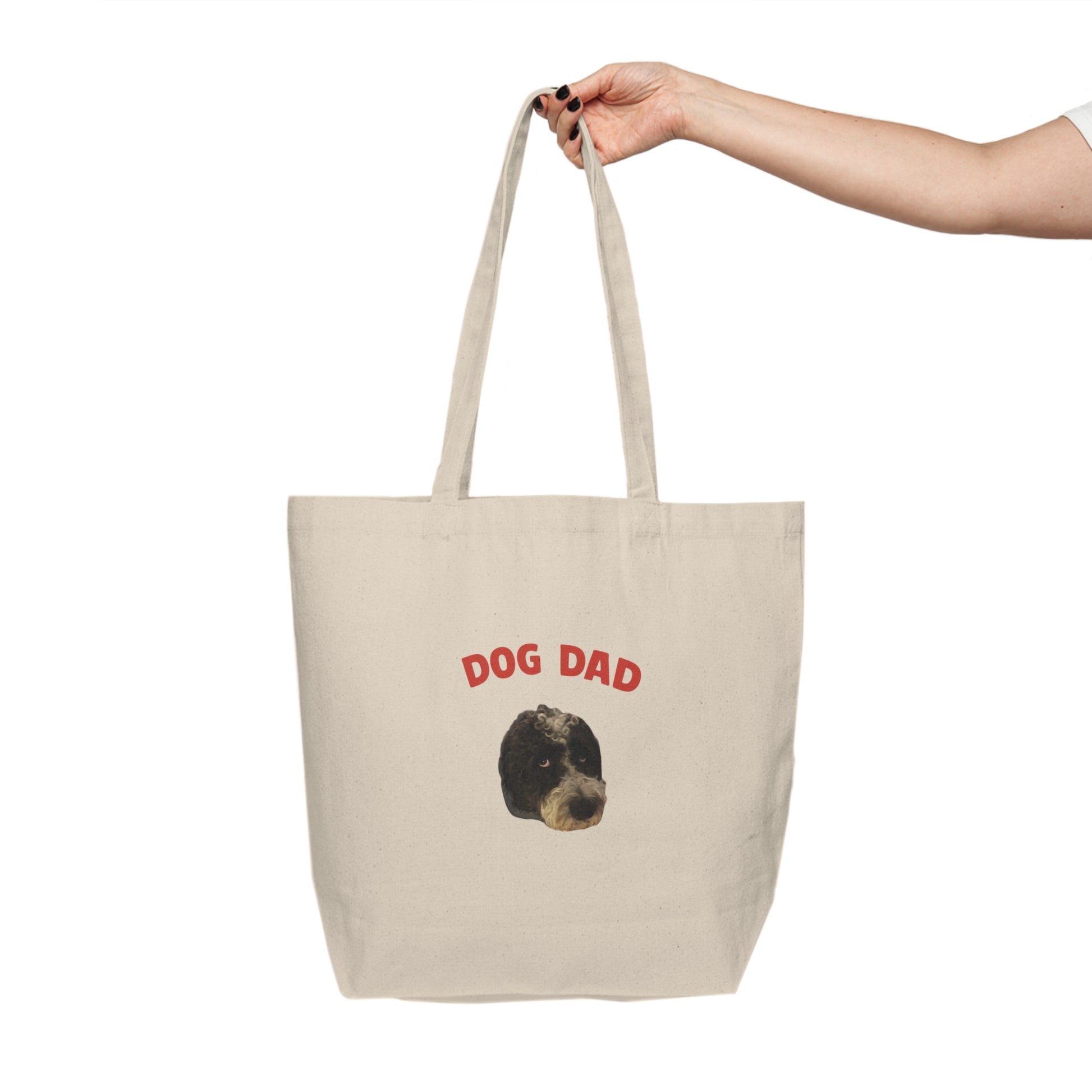 Sustainable shopping meets dog dad pride! This sturdy canvas tote features your dog's adorable face with "Dog Dad" text printed on both sides. Perfect for farmers markets, beach days, or any time you want to show off your pup while saving the planet. Made from durable 10oz natural cotton canvas that handles everything from groceries to dog toys. Because good boys deserve earth-conscious parents! 🌍